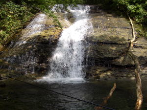 登山道途中の雨滝です。雨のように滝が落ちているので、